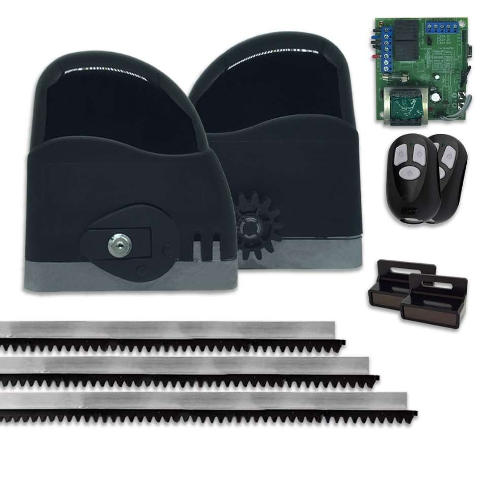 KIT AUTOMATIZADOR DESLIZANTE BASE ALUMINIO 1/3 PARA 600 KILOS COM 3 MTS CREMALHEIRA E 2 CONTROLES EM 127V - 220V